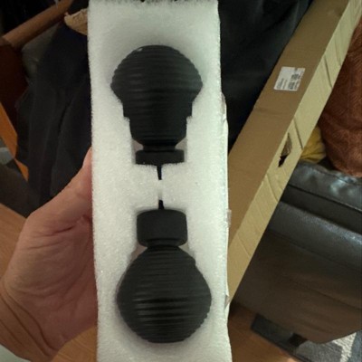 - The Jetson matte black curtain rod and finial set features a geometric, multi-dimensional design with circular iron strand finials