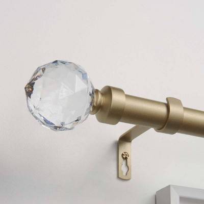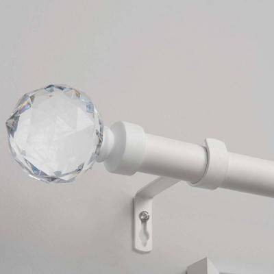 The Crystal Ball decorative curtain rod and finial set provides a glamorous touch with a matte finish rod and multi faceted, clear acrylic sphere shape finials. These finials are sure to add just the right amount of sparkle to your decor. This set will provide a visually balanced appearance for your window treatments. The 2.4" diameter x 2.2" long finials will insure that your window curtain panels will remain securely on the rod. The 1" diameter iron adjustable curtain rod is designed to fit a wide range of window widths, and has a sturdy 25 lb. capacity that will support flowing sheers to thermal blackout panels. The 3.5" fixed depth projection bracket provides a gracious amount of space for fabrics to drape perfectly. Accommodates window curtain panels and drapes that are designed with various tops, including: rod pocket, pinch pleat, clip rings, grommets, tab top, or hidden back tab top. Provides an attractive accent to every window treatment in your living room, bed room, bathroom, kitchen, and kids room. Installs easily with included hardware and installation instructions. Sturdy, easy clean, no fuss, wipe clean finish will last for lifetime. This window curtain rod and finial set will add the perfect finish accent to any window treatment and adds a refined style to your home decor.
