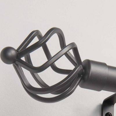 The Torch decorative curtain rod and finial set has an open, airy design with a matte finish rod and twisted iron strand sphere shape finials. This set will provide a visually balanced appearance for your window treatments. The 2.6" diameter x 3.2" long finials will insure that your window curtain panels will remain securely on the rod. The 1" diameter iron adjustable curtain rod is designed to fit a wide range of window widths, and has a sturdy 25 lb. capacity that will support flowing sheers to thermal blackout panels. The 3.5" fixed depth projection bracket provides a gracious amount of space for fabrics to drape perfectly. Accommodates window curtain panels and drapes that are designed with various tops, including: rod pocket, pinch pleat, clip rings, grommets, tab top, or hidden back tab top. Provides an attractive accent to every window treatment in your living room, bed room, bathroom, kitchen, and kids room. Installs easily with included hardware and installation instructions. Sturdy, easy clean, no fuss, wipe clean finish will last for lifetime. This window curtain rod and finial set will add the perfect finish accent to any window treatment and adds a refined style to your home decor.
