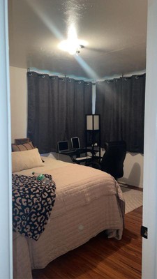 Says what it is, it’s room-darkening, not blackout curtains. That’s 100% true, so I will admit I bought this without fully noticing the difference in phrasing. I assumed at the time it was the same thing. Anyways, it’s really nice quality, I like the feel of the material. It does however need to be ironed a bit or something to get the wrinkles and indentations out due to how it’s packaged. Just to clarify for others wondering or is a first time curtain buyer like I am, this comes with 2 curtains that are 63” wide and 52” long each. When hung up together side by side, it makes a total length of 126” wide. So this definitely fit the wider panel windows I currently have while also leaving extra room on the sides. Definitely factor that in when measuring, or else it won’t block as much of the sun on the sides. Be careful when measuring. When in doubt, measuring again to be sure.
