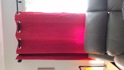Oh wow, these curtains are not at all what I expected. I thought the color was more burgundy based on the pictures but the color is bright red. Also, it looks like I got two completely different curtains. One has almost a shimmery material and the other is more of a rigid texture.