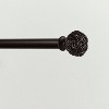 The Peony decorative curtain rod and finial set features a timeless, romantic style and floral design with a matte finish iron rod and coordinating cast resin peony, sphere shape finials. This set will provide a visually balanced appearance for your window treatments. The 2.4" diameter x 2.7" long finials will insure that your window curtain panels will remain securely on the rod. The 1" diameter iron adjustable curtain rod is designed to fit a wide range of window widths, and has a sturdy 25 lb. capacity that will support flowing sheers to thermal blackout panels. The 3.5" fixed depth projection bracket provides a gracious amount of space for fabrics to drape perfectly. Accommodates window curtain panels and drapes that are designed with various tops, including: rod pocket, pinch pleat, clip rings, grommets, tab top, or hidden back tab top. Provides an attractive accent to every window treatment in your living room, bed room, bathroom, kitchen, and kids room. Installs easily with included hardware and installation instructions. Sturdy, easy clean, no fuss, wipe clean finish will last for lifetime. This window curtain rod and finial set will add the perfect finish accent to any window treatment and adds a refined style to your home decor.