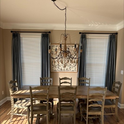 A very nice curtain rod - sturdy and pretty! The embossed vines on the ball finials add a little flair than just the plain metal!