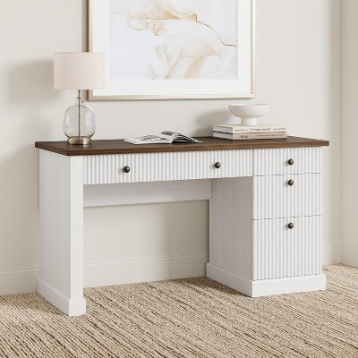 Executive Desk with Drawers, Farmhouse Home Office Desk with Charging Station, 53.54" Wooden Computer Writing Desk with File Cabinet Storage