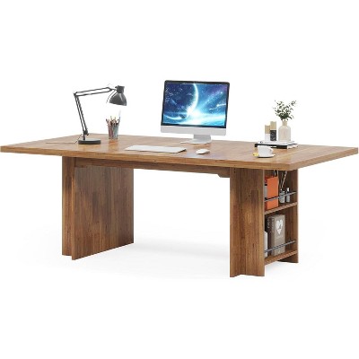Executive Desk with File Drawers, Farmhouse Home Office Desk with Charging Station, 60" Wooden Computer Desk with Cabinet Storage for Work Study