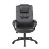 Our high back executive LeatherPlus chair is the perfect compliment to any office. Upholstered with beautiful black LeatherPlus, a combination of leather and polyurethane that promotes exquisite softness and durability, this chair is more than capable of taking comfortable seating to a new level. Additional features include passive ergonomic seating with integrated lumbar support, padded armrests covered in the same elegant upholstery, an upright locking position, pneumatic gas lift seat height adjustment, spring-tilt mechanism, and adjustable tilt tension control.