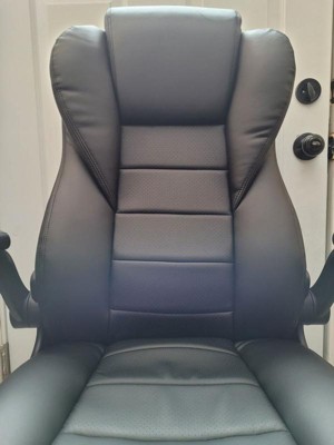 [This review was collected as part of a promotion.] The Boss Executive High Back CarressoftPlus Flip Arm Chair is a welcome addition to my home office. It is comfortable and stylish and worthy of being called "Executive" because it has several high-end features such as passive ergonomic seating with integrated lumbar support, padded flip arm armrests covered in the same soft leather-like upholstery as the chair, an upright locking position, pneumatic gas lift seat height adjustment, spring-tilt mechanism, and adjustable tilt tension control. It does come unassembled but was fairly easy to put together. I would recommend this desk chair to anyone who wants modern and functional furniture in their office.