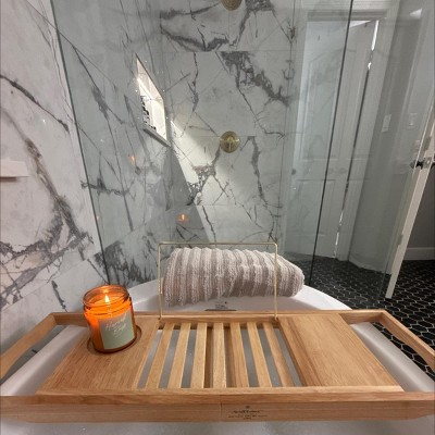 This bath tray is almost perfect. My only complaint is the book/tablet stand. I wish it had an extra bar so I could also use it for my phone. Other than that, I live it. It fits over our large bath, is sturdy and just looks really nice in general. Definitely elevates the bath experience and is really useful.