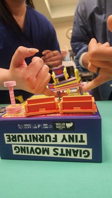 - In Giants Moving Tiny Furniture, your team will move miniatures to their new home…using only their pinkies!