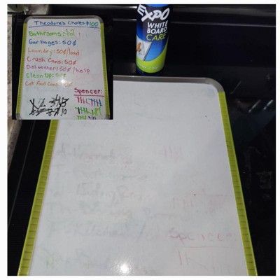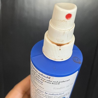 [This review was collected as part of a promotion.] I got the expo dry erase cleaning spray and it works real well, no left behind marker easy to use, it doesn’t make a mess while spraying. The spray is define worth the money.