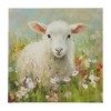Introducing Intelligent Design's charming wall art decor by Tessa Kane! Measuring 16"W x 16"H x 1.0"D, this delightful canvas features a heartwarming image of a happy and sweet lamb frolicking in lush flower fields. With a pre-installed Sawtooth hanger, it's a breeze to hang this masterpiece on any wall. Hang one or multiple of other Sunshine animal canvas for your living room, dining room decor. Designed for indoor use, this wall decor adds a touch of serenity to your home.