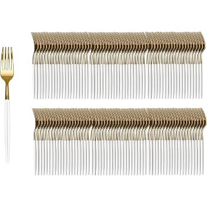 Introducing the Exquisite Plastic Silverware Two Toned Plastic Forks, the perfect addition to your dining essentials, combining elegance and convenience in a 120-count pack of disposable Forks. Each Fork in this sophisticated set features a stylish two-toned design, boasting a sleek white handle and an opulent gold base, making them a standout choice for your wedding cutlery, birthday supplies, and other party supplies. Crafted with both aesthetics and functionality in mind, these disposable plastic Forks are not just visually appealing but also highly practical. Their durable construction ensures a reliable cutting performance, ideal for a variety of foods at any event. With such a generous count of 120 disposable Forks, you can easily accommodate large gatherings, ensuring each guest has access to these essential utensils. These disposable utensils are more than just plastic silverware; they are a statement of style and practicality. They blend seamlessly into any table setting, elevating the overall aesthetic of your event, be it a wedding, birthday party, or any other special occasion. The convenience of these disposable Forks cannot be overstated – they simplify the clean-up process, making them a favorite for events where efficiency is key. Moreover, the individual wrapping or packaging of each disposable plastic Fork ensures hygiene and safety, an essential aspect of catering to a large number of guests. Despite their luxurious appearance, these Forks are an affordable addition to your party supplies, offering a touch of elegance without a hefty price tag. In summary, the Exquisite Plastic Silverware Two Toned Plastic Forks are a fusion of elegance, functionality, and convenience. Whether part of your wedding cutlery or as a vital component of your birthday and party supplies, these disposable plastic Forks are an excellent choice for any host looking to add a sophisticated touch to their event while enjoying the benefits of practicality and ease.