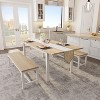 - 【Expandable Dining Table Set】Includes 1 table, 2 long benches, and 2 stools; table extends from 47.3" to 63" to seat 4–8 people.