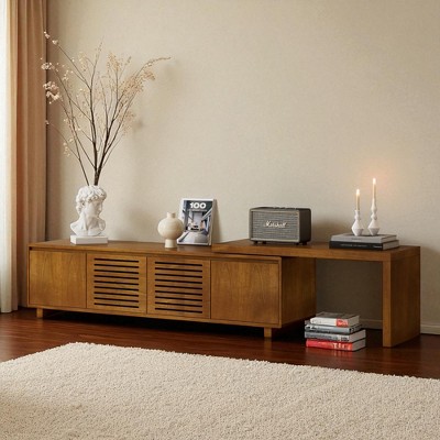 Bring style and functionality to your living space with this mid-century modern TV stand. Measuring 78" to 110" in adjustable length, it supports TVs up to 85 inches while providing flexible storage solutions. Its extendable design adapts to apartments, media rooms, or large living spaces with ease.