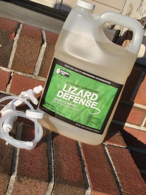 [This review was collected as part of a promotion.] Exterminators Choice: Lizard Defense Repellent Spray unscented 1 gallon has a slight odor. It seem to keep back the lizards. Comes in a 1 gallon spray jug. Do not store in cold weather keep in closed storage area.
