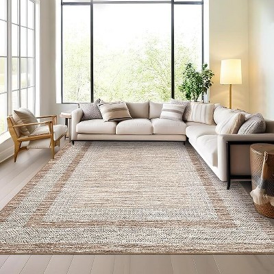 Extra Large Area Rug 10x13 Modern Geometric Bordered Rug Washable & Non Slip, Low Pile Non Shedding Faxu Wool Mat for Home & Office Use, Green