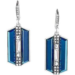 Extra Large Art Deco Earrings with Blue Rhinestones