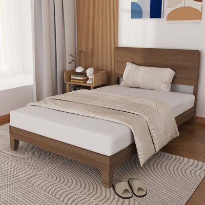 Extra-large Bed Frame, Equipped with Wooden Headboard, Storage Space and Metal Legs, No Springs Required, Easy to Assemble without Drawers