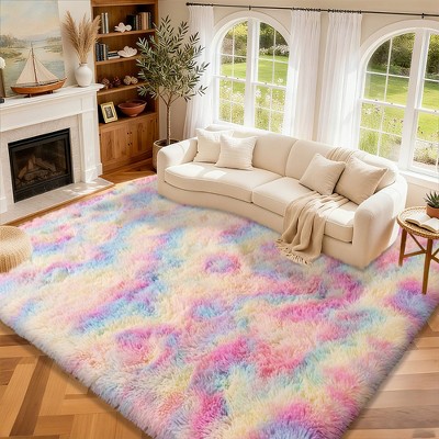 Extra Large Plush Shag Area Rug, 1.7" Thick Ultra Soft Non-Slip Tie-Dye Peacock Blue Mat Blue 8x10ft / 95x118in / 240x300cm