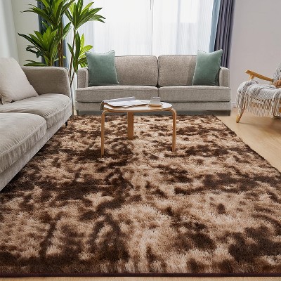 Extra Large Plush Shag Area Rug, 1.7" Thick Ultra Soft Non-Slip Tie-Dye Peacock Blue Mat Brown 9x12ft / 108x144in / 270x360cm