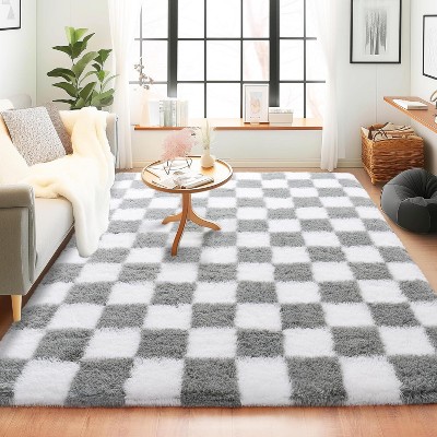 Extra Large Plush Shag Area Rug, 1.7" Thick Ultra Soft Non-Slip Tie-Dye Peacock Blue Mat Red 5x7ft / 60x84in / 150x210cm