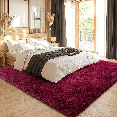 Extra Large Plush Shag Area Rug, 1.7" Thick Ultra Soft Non-Slip Tie-Dye Peacock Blue Mat Red 6x9ft / 72x108 in / 180x270cm