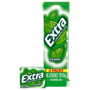 - Contains one (1) bag of 3 individually wrapped, 15-piece packs, of EXTRA Spearmint Sugarfree Gum
