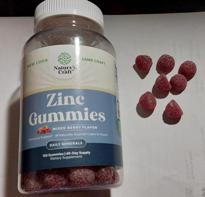 Extra Strength Zinc Gummies for Adults, Chewable Zinc Citrate 50mg Immunity Gummies, Gluten & Gelatin Free Non-GMO, Mixed Berry, Nature's Craft, 120ct