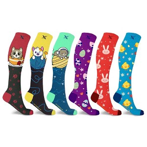 Extreme Fit Bunny, Chicks And Pets Love Expressive Knee-High Compression Socks - 6 Pair - 1 of 4