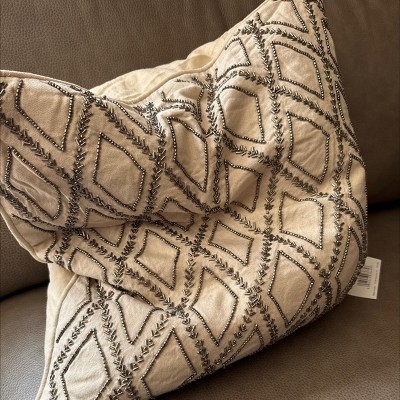 EY Essentials Geometric Diamond Natural Tan Beaded Cotton Decor Throw Pillow, 18" x 18" Cover And Insert Set
