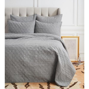 Draped in Diamonds. Double-layered diamond quilting is hand stitched across the 100% cotton chambray of the Sutton Quilt. These diamonds go with everything, and are begging to be layered and accented with simply elegant bedding and accessories. Create a glamorous look with the glint and gleam of metallic thread and glass beads, or build a classic look with solid throws and pillows.