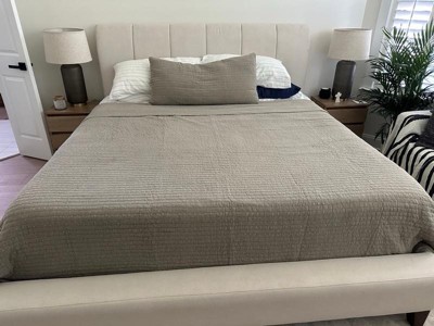 [This review was collected as part of a promotion.] Beautiful taupe color that matches bedroom perfectly. The quilt has a lovely design that adds character without being too busy, the reverse is soft and very comfortable. It is lightweight and perfect for the summer weather in the south.