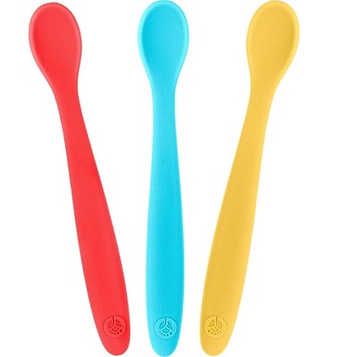 These spoons are so cute and well designed. The handle shape and size makes it easy for my baby to handle! My 5 month old has been playing with these at the table, practicing for starting solids! Having multiple spoons will allow us to rotate and trade a loaded spoon for an empty spoon with her.