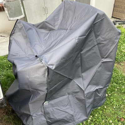 [This review was collected as part of a promotion.] Weatherproof cover that does the job but isn’t too heavy! Upon opening, my husband immediately said I needed to order the size to fit over his grill. The material feels nice and though it’s not thick, it seems sturdy and looks like it will hold up to weather. Buckles to keep the sides in and attach around a stack of chairs is a nice touch will keep the cover on tight in windy conditions too. I received an incentive to write this review.