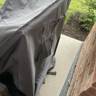 [This review was collected as part of a promotion.] Weatherproof cover that does the job but isn’t too heavy! Upon opening, my husband immediately said I needed to order the size to fit over his grill. The material feels nice and though it’s not thick, it seems sturdy and looks like it will hold up to weather. Buckles to keep the sides in and attach around a stack of chairs is a nice touch will keep the cover on tight in windy conditions too. I received an incentive to write this review.
