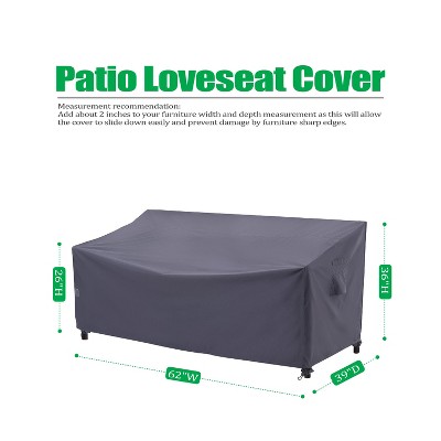 - ALL WEATHER PROTECTION: The patio loveseat cover /couch cover / bench cover can be used in spring, summer, autumn and winter, it is a perfect shield for your outdoor seater from harmful UV radiation, rain, snow, dust, dirt, and scratching.