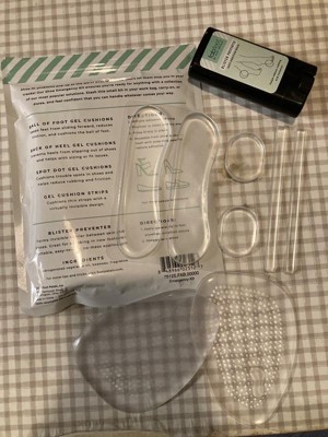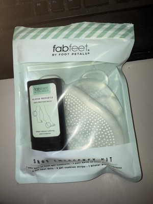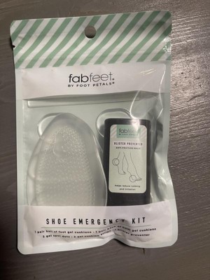 Keep yourself comfy no matter what the day brings with the Fab Feet by Foot Petals Shoe Emergency Kit. Use the ball of foot gel cushions to make your shoes less painful, or add the gel strips to the interior of your loafer's topline to secure the fit. The blister preventer glides onto any spot on your foot, creating a protective barrier. Everything comes in a resealable bag, making this shoe kit easy to stash in your purse, work bag or carry-on to keep you prepared for any shoe emergency. Gel cushions directions: remove adhesive backing, position in clean and dry area of your shoe, and press firmly in place. Blister preventer directions: apply generously directly to skin where irritation occurs, reapply as needed.