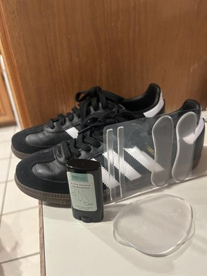 The best part of this kit hands down is the blister preventer stick. I kept this in my bag and reapplied it a few times during my work day on a pair of heels that I was breaking in. It had a light floral scent. I felt that it was a bit of trial and error to not press the stick too hard otherwise it would just go everywhere. The gel cushions were all just a few millimeters thick and had great flex. It was super sticky as soon as I removed them off the plastic and then after touching it several minutes I washed them. It was truly just as sticky as it had been when I initially took them off. Inside of these cushions had many line segments which helped attach on any area of the shoe. Overall this product helped make the breaking in process much less painful and quicker because I could wear them longer.