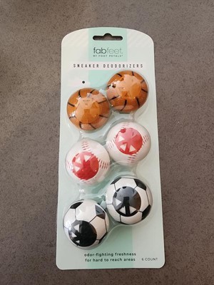 Cute sporty deodorizers to keep the stink to a minimum. My kids loved choosing between the different sport theme deodorizer balls. They smell really good and the smell isn’t overwhelming. They fit well in kid shoes.