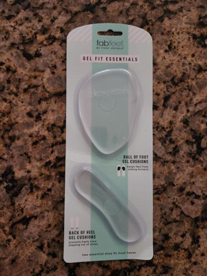 I like how these Fab Feet Gel Shoe Cushions by Fit Essentials, provide me with additional support and comfort for my feet. Each package contains sufficiently thick cushions for the balls of your feet and the back of your heel. The clear and lightweight, flexible cushions have a soft jelly like texture, and are very easy to place, fit and rearrange in a shoe. They are reusable and don't leave a sticky residue. I recommend them for anyone who is on their feet a lot.