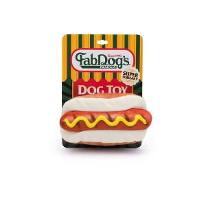 Hot Dog Dog Toy by fabdog® Treat your pup to a hot dog toy that looks good enough to eat! With a stuffed bun and one long super squeaker, your pup will have endless hours of fun!