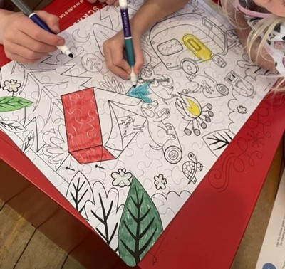 [This review was collected as part of a promotion.] This puzzle is such a fun activity for kids! I have a 10 and 7 year old and they both had a great time coloring and putting this puzzle together. The theme, camping, is very cute and I'd love to see what other ones they have. I'm thinking I'll purchase another for my neice and nephew for Christmas. I like how this is a simple activity for kids and adults to share with each other and spend quality time together doing.