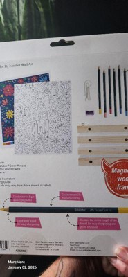 [This review was collected as part of a promotion.] I decided to let me 11 year old color this picture, I felt that it would be perfect for her to venture around with. She loved it! It is a color by number, but you could always color it on your own. She decided to still with the color by numbers! It comes with a poster to follow, which I liked cause you don't have the numbers on the paper itself! It comes with two wood pieces to attach and some string/eyelets to hand the picture when you're done! It also comes with the pencils you'll need for the picture and a pencil sharpener! All in all, she loved doing this color by number picture!