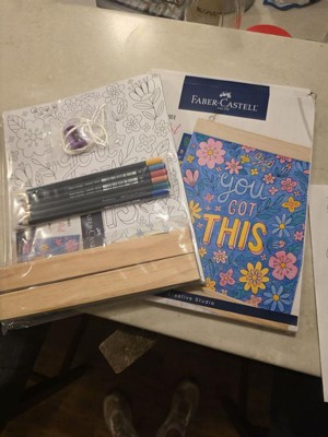 [This review was collected as part of a promotion.] I really like this Faber - Castell Color By Number Wall Art "You Got This ". The kit has everything you need to create this nice wall art. Very good quality color by number canvas. Its very simple to put together. It was very relaxing and definitely will be buying more.