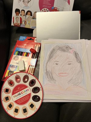 [This review was collected as part of a promotion.] I recently received this Farber-Castel World Colors: How to Draw Faces kit. I really enjoyed this kit. I like the skin tone matching wheel. And while I was able to match my skin tone I think there could be a little more tones on there. There are three double sided skin tone colored pencils and I would have preferred if they were their own individual pencil. I do think there needs to be additional variety of peach, tan, and brown shades for diversity of skin tone and hair color. I also would have preferred additional shades of green, blue, and again brown for different eye colors. The instructions were simple and easy to follow. I like that there was three phases to practice first with pencil shading, next practice drawing on transfer paper, and then drawing on drawing paper. I like that there was a variety of shapes for eyes, noses, and mouths. However, I would have liked if there were also different options for eye brows and ears. I liked that it came with a mirror stand. I would have preferred if there was 20-30 sheets of drawing paper. Overall, I enjoyed this kit.