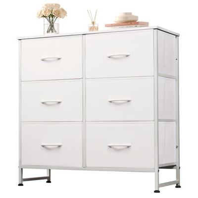Fabric Dresser for Bedroom, Wide 5-Drawer Chest of Drawers with Storage Organizer Unit, White