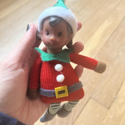 Beware of your child not allowing it to actually be an ornament on the tree. My 4-year-old determined that this cute elf couldn’t be banished to the tree, so we have brought her everywhere with us this week, including to see Santa! I think my daughter was just excited to be able to touch/hold an elf, if you know what I mean. She has held up nicely and it’s the perfect size for a friend or if you want to use her as an actual ornament then that works too!