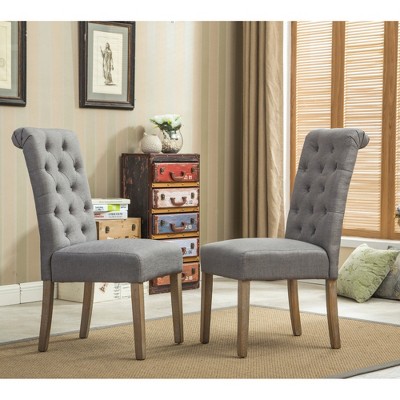 - Set of 2 enticing nailhead trim dining chair, tan-colored linen and cotton fabric upholstery on the seat and chair back.