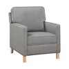 - Gray textured fabric and natural oak legs ¨C Classic, traditional style that easily complements modern homes.