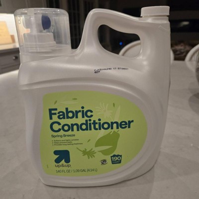 [This review was collected as part of a promotion.] I bought the spring breeze 140 ounce up and up fabric softener. This is my first time I bought this brand of fabric softener from target. I like that it has the two different spout options, and comes with a little cup for measuring. Right when I poured it out, you can smell the fresh scent of the fabric softener in the cup, and it was not overpowering. After I washed my clothes with it that stayed on our clean laundry and made it smell refreshing, but not overpowering. I will definitely be buying this again, and will not even need to buy any added smelling beads with this softener. I received an incentive to write this review.